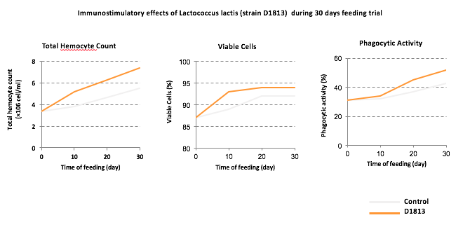 Lactococcus lactis strain D1813 was isolated from the intestine of wild kuruma shrimp (Marsupenaeus japonicus). This strain improves fish and shrimps immune and digestion system.
